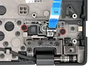 Используйте крестовую отвёртку, чтобы открутить два винта длиной 3 мм, удерживающие сканер отпечатков пальцев.