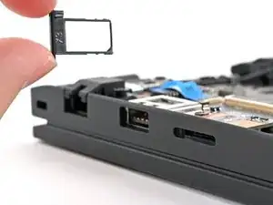 Возьмите крышку порта Ethernet и снимите её с ноутбука.