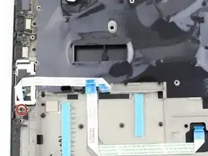 Используя крестовую отвёртку №1, выверните один винт снизу кронштейна, закрывающего сканер отпечатков пальцев.