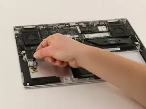 Отключите кабель батареи от разъема на материнской плате, аккуратно потянув его в сторону батареи. Может понадобиться лопаточка, чтобы приподнять фиксирующую заглушку.