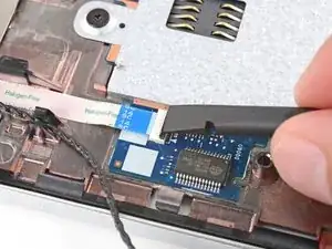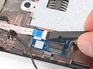 Используйте лопатку, чтобы приподнять откидную запорную планку на ZIF‑разъеме считывателя смарт-карт.