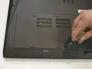 Переверните компьютер дном вверх, чтобы нижняя часть была обращена к вам.