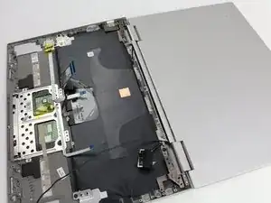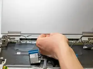 Поднимите сенсорный экран назад и вверх, чтобы снять петли с корпуса ноутбука.