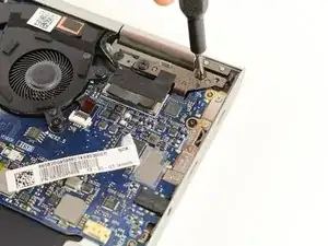 Используйте отвёртку Phillips #00, чтобы выкрутить 2,5 мм винт, фиксирующий сетевую карту.