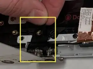 Удалите черные вкладки в нижних левом и правом углах и извлеките два винта M2.5x2.5, находящиеся за черными вкладками, с помощью отвертки J0.