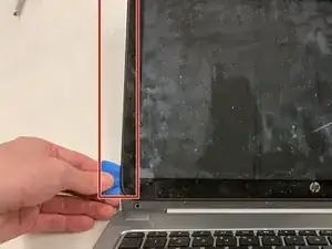 Вставьте лопатку между черной пластиковою панелью экрана и серебристым пластиковым корпусом на стороне устройства.