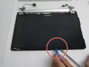 Используйте пластиковый инструмент для открывания, чтобы снять заднюю крышку с ноутбука.