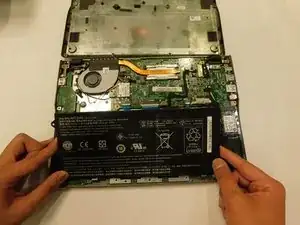 Отключите аккумулятор от материнской платы, осторожно потянув разъем за собранный кабель.