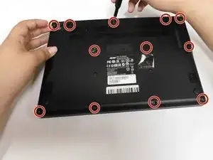 Удалите винты Phillips #00 длиной 1 см на задней крышке.