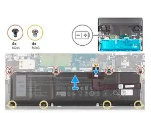 Удалите четыре винта (M2x3), которые крепят аккумулятор к блоку с клавиатурой и области под palms.