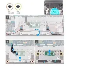 Удалите два винта (M2x2), которые крепят сенсорную панель к блоку с клавиатурой и области под palms.