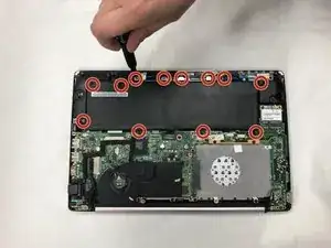 Чтобы снять заднюю крышку, необходимо положить ноутбук на стол с закрытой крышкой и открутить Schrauben с помощью отвертки Phillips #0.