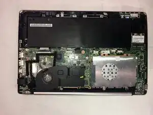 Поднимите сенсорную панель вверх и к батарее, чтобы снять ее с ноутбука.