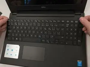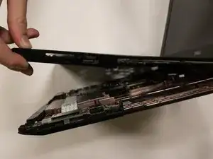 Как только все пять выемок в верхней части клавиатуры будут освобождены, начинайте поднимать клавиатуру сверху.