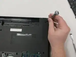 Воспользуйтесь крестообразной отвёрткой #0, чтобы вывернуть винт длиной 2,0 мм с задней стороны устройства рядом с вентиляционными отверстиями.