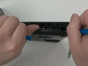 Воспользуйтесь крестообразной отвёрткой #0, чтобы вывернуть винт длиной 4,0 мм, расположенный справа от привода дисковода.