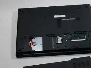 Воспользуйтесь крестообразной отвёрткой #0, чтобы вывернуть винт длиной 2,0 мм рядом с чёрной язычком-захватом жёсткого диска, расположенного в левой нижней части устройства.