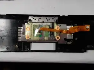 После удаления винтов панель сенсорной панели должна приподняться, как показано. Аккуратно поднимите, чтобы внутреннее содержимое было видно.