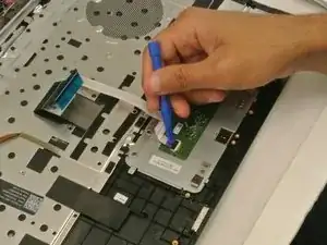 С помощью пластикового инструмента приподнимите сенсорную панель с накладки клавиатуры.