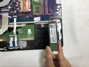 С помощью отвертки Phillips #1 снимите один винт длиной 3.0 мм, удерживающий модуль SSD на месте.