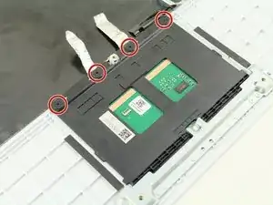 Удалите четыре винта Phillips #0 длиной 2,5 мм вдоль верхнего края тачпада.