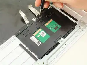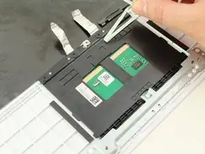 Используйте лопатку, чтобы отпустить фиксирующую планку ZIF-коннектора вблизи центра тачпада.