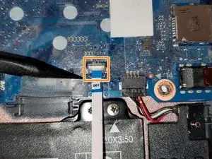 Используя заострённый конец лопатки, поднимите фиксирующую планку, удерживающую лентовый кабель на месте.