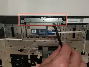 Удалите три винта 2,5 мм, которые закрепляют кронштейн сенсорной панели и кронштейн к клавиатуре/верхней крышке, с помощью крестовой отвёртки Phillips #1.