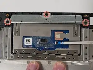 Удалите три винта 2,0 мм, которые закрепляют сенсорную панель к клавиатуре/верхней крышке, с помощью крестовой отвёртки Phillips #1.