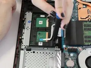 Используйте крестовую отвёртку Phillips #00, чтобы вынуть два винта, удерживающие сенсорную панель на месте.