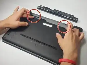 Сдвиньте два фиксирующих защёлки, о которых упоминалось при снятии батареи, чтобы освободить сервисную панель.