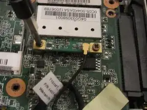 Используйте нейлоновую лопатку, чтобы приподнять беспроводную антенну с сетевой карты и удалить винты.