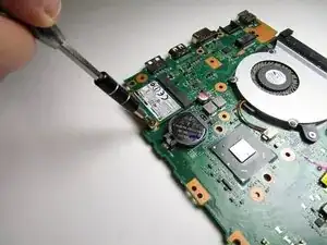 Открутите 5-миллиметровый винт в углу сетевой карты с помощью отвертки Phillips #0.