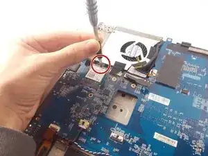 Используйте отвертку, чтобы открутить винт Phillips #0 диаметром 0.5 мм, который удерживает сетевую карту Wi-Fi на месте.