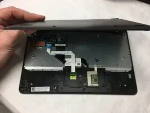 Пластиковой вскрывающей инструментом отделите переднюю и заднюю половины клавиатуры.