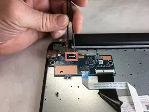 Пинцетом отсоедините шлейф шарнира. Аккуратно потяните, слегка покачивая разъём вперёд и назад.