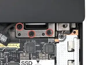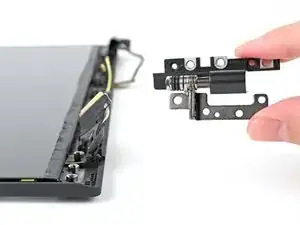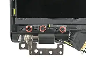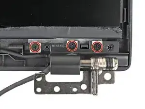 Используйте крестовую отвертку, чтобы вынуть шесть винтов длиной 6,5 мм, крепящих петли к ноутбуку.