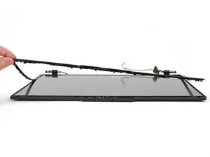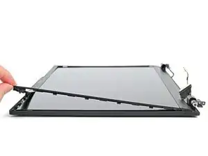 Если трудно отделить клей, используйте лопатку, чтобы разрезать клей, при этом аккуратно не повредив плёнку. Если по‑прежнему сложно, используйте iOpener или фен, чтобы слегка нагреть нижний край рамки.