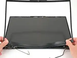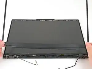 Проведите лопатку вокруг верхнего правого угла, чтобы отщёлкнуть защёлки рамки, останавливаясь перед веб‑камерой.