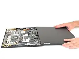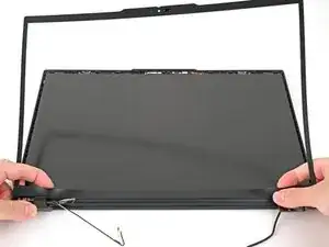 Поднимите сборку экрана строго вверх и извлеките её из корпуса ноутбука.
