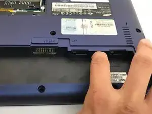 Убедитесь, что ноутбук выключен и отключен от питания перед удалением батареи.