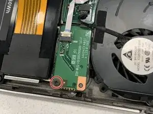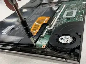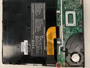 Удалите два винта Phillips #1 длиной 5,0 мм на задней стороне ноутбука.