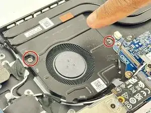 Снимите два винта Phillips #0, 2 мм, которые крепят системный вентилятор.