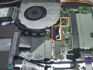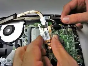 Удалите соединительный провод, который идет от вентилятора к системной плате.