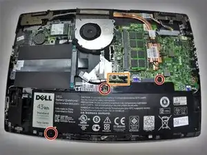 Используйте отвертку Phillips, чтобы удалить два винта по 3 мм, удерживающих батарею.