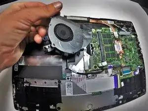 Поднимите вентилятор с системной платы, используя большой и указательный или средний пальцы, чтобы аккуратно оторвать его от устройства.