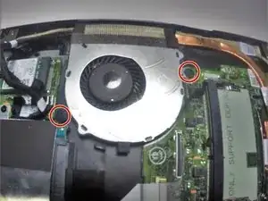 Удалите винты по 3 мм и 4 мм с помощью отвертки Phillips #0, которые удерживают вентилятор.