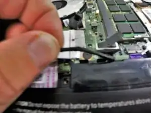 Отсоедините провод жесткого диска от батареи.