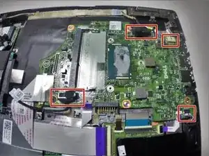 Снимите скотч с проводов на системной плате.