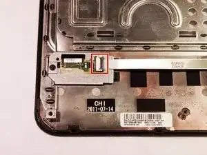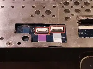 Освободите 2 ZIF-разъёма, к которым подключены кабель тачпада и считыватель отпечатков.